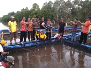 Kepala Dinas Perikanan Kabupaten Kotawaringin Timur beserta rombongan meninjau lokasi kelompok Pembudidaya Ikan “MANJUHAN BELUM” yang ada di Kelurahan Tanah Mas, kecamatan Baamang kabupaten Kotawaringin Timur pada Kamis (13/09/2018).