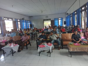 Pada kegiatan ini, Narasumber berasal dari Dinas Perikanan Kab. Kotim dan dari Asuransi Jasindo Sampit. Materi yang diberikan adalah yang berkaitan dengan pengelolaan perikanan daratan/air tawar, mekanisme penyaluran bantuan perikanan, cara budidaya ikan yang baik, informasi kartu KUSUKA (Kartu Pelaku Usaha Perikanan), kelembagaan perikanan dan informasi mengenai asuransi nelayan dari Jasindo Sampit. Setelah materi diberikan peserta diberikan waktu untuk menyampaikan permasalahan yang dihadapi di lapangan dan diberikan waktu/kesempatan untuk bertanya kepada narasumber yang berkaitan dengan teknik perikanan yang telah disampaikan oleh narasumber.