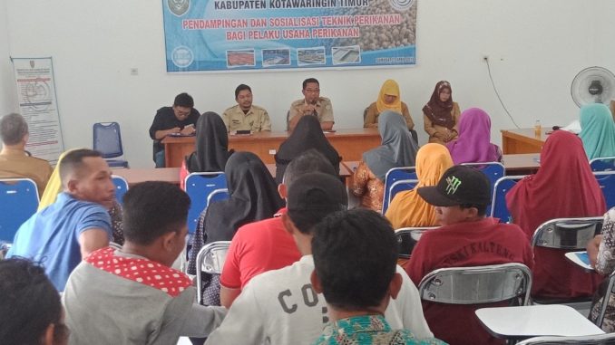 Dalam rangka merealisasikan program Pemberdayaan Pelaku Usaha Perikanan, Dinas Perikanan Kabupaten Kotawaringin Timur melaksanakan kegiatan Pendampingan dan Sosialisasi Teknik Perikanan Bagi Pelaku Usaha Perikanan di Kecamatan MH.Selatan yang berlokasi di Balai Diklat Sekaya Maritim Desa Sei Ijum Raya. Kegiatan ini merupakan satu usaha upaya untuk meningkatkan kapasitas pelaku usaha perikanan agar menjadi pelaku usaha perikanan yang mandiri dan berdaya saing. Kegiatan ini dilaksanakan selama 1 hari, pada tanggal 23 April 2019 yang diikuti oleh 40 orang yang berasal dari desa Sei Ijum Raya, desa Sebamban, desa Samuda Besar, desa Samuda Kecil, desa Handil Sohor, Kelurahan Basirih Hilir, Desa Basirih Hulu dan Desa Jaya Kelapa. Para peserta merupakan pelaku usaha perikanan yang tergabung dalam kelompok usaha perikanan, yaitu kelompok pembudidaya ikan (Pokdakan), kelompok usaha penangkapan ikan (KUB perikanan) dan Kelomopok Pengolah dan Pemasar Hasil Perikanan (Poklahsar). Kegiatan ini bertujuan untuk meningkatkan kapasitas pelaku usaha perikanan dibidang teknik perikanan. Pengetahuan dan keterampilan yang dimiliki setelah mengikuti kegiatan ini diharapkan menjadi modal untuk dapat mngembangkan usahanya, sehingga menjadi pelaku usaha perikanan yang maju, mandiri dan berdaya saing. Dengan kegiatan ini diharapkan kedepannya dapat meningkatkan produksi hasil perikanan sehingga dapat meningkatkan perekonomian keluarga dan meningkatkan pendapatan daerah disektor perikanan.